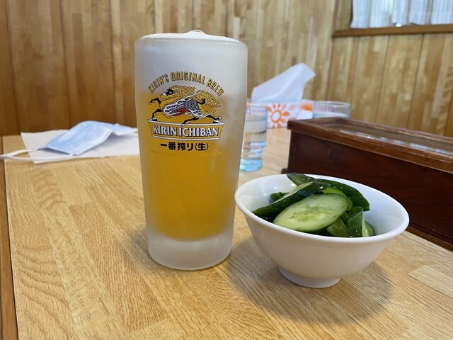 年末の昼間なので、アルコール抜きにしようと思ったら、ポスターの丁寧に入れます、の一言で、生ビールとキュウリの浅漬けに目が眩み、まず注文。