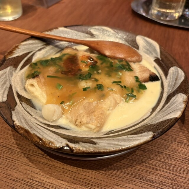 黒酢が入った蓮華が一緒に提供されるのでそれに入れて食べた。