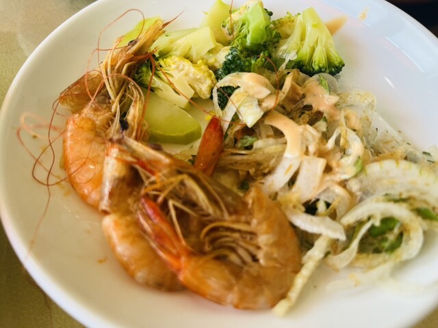緑の変わった野菜はアイスプリン!同行人がアイスプラントでは?って言うと…うんそれ!って可愛く受け答え