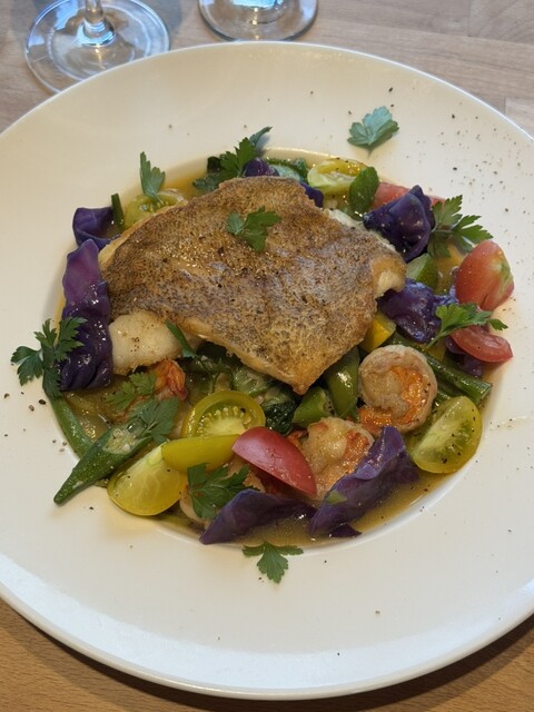 釣り好きのシェフの釣った、キジハタは身もぷりぷりでペペロンチーノソースともよく合います️