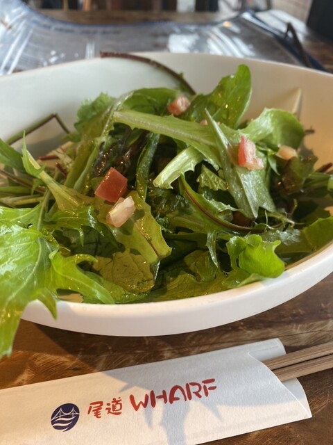 サラダ、魚、肉、パスタ、ピッツァ他タコ唐などつまみもたくさんあり、お酒も瀬戸田レモンチューハイ他色々あります。
