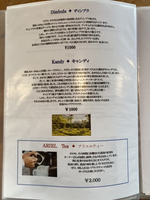 メニュー(原産地特有のキャラクターを持った紅茶2)