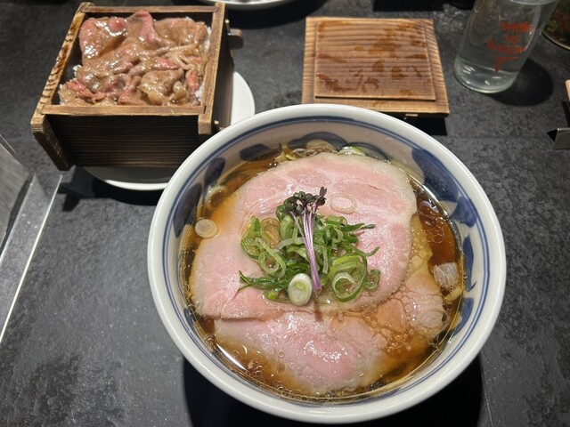 特製ラーメン(太麺)と黒毛和牛せいろご飯を注文!