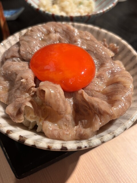いつもはしゃぶしゃぶが多いイメージでしたが今回はなんとすき焼き風!卵黄が邪魔しない甘いお出汁で最高にうまぁちゅんでした!