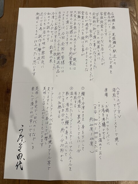 私は予約を取る資格がないので「ふるさと納税返礼品(冷凍の蒲焼き)」として、田代さんの鰻が自宅で楽しめるセットを頂きました!