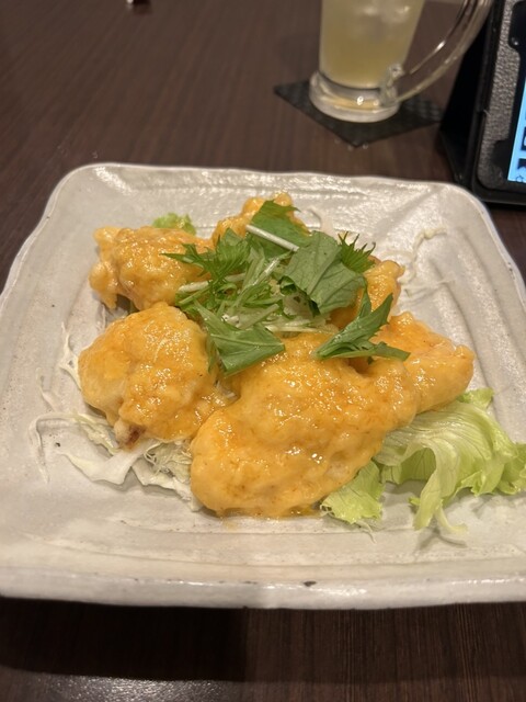 帆立貝柱とエビチリマヨ→ホタテとエビが合体していて食べ応えあって美味し!