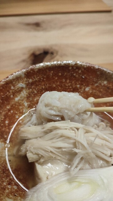 猪を使ったとは思えないほどのお上品なスープでごくごく飲んでしまいます、冷えた状態の時はコラーゲンが固まり少しプルプルしていて翌日のお肌に期待してしまいます