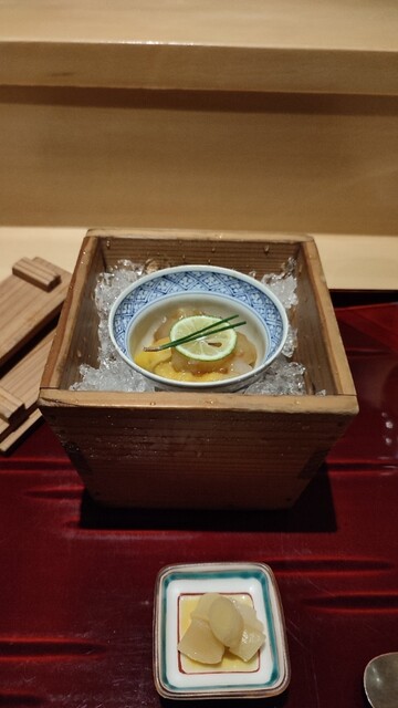 ◇越前蟹、余市のあん肝、酢飯のグラス