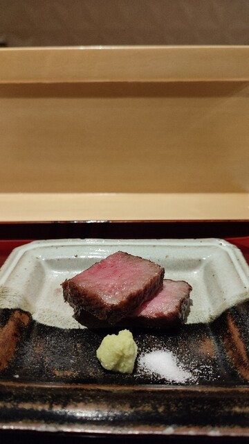 炭火で表面が焼かれ中は程よいミディアムレア、小食の方には追加をお勧めしません笑