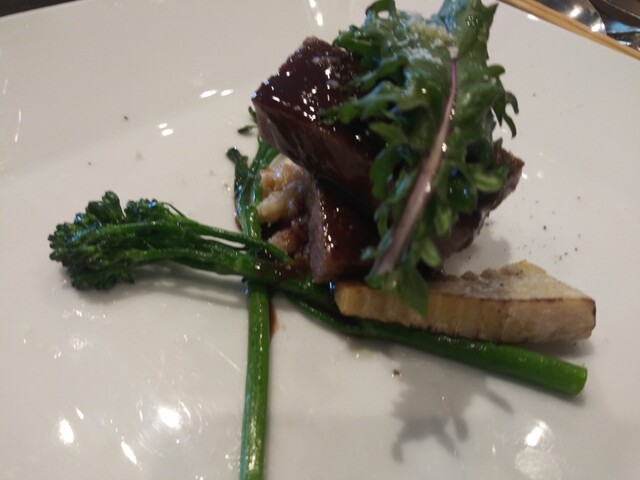 メインの魚は鯛で肉は牛肩ロース。肉のソースは赤ワインベースのものでした。