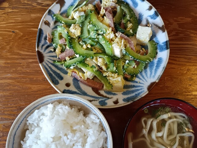 この日はゴーヤチャンプルーの定食をいただきました。ゴーヤは季節外れではあるものの苦みも旨みもしっかりあるものでした。沖縄居酒屋ではなく沖縄家庭料理と謳っているように味付けは食事向けでとても美味しかったです。