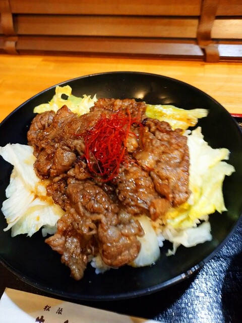 初めて牛銀洋食屋さんへ行きました。最初は牛銀さんの横って聞いていたのでそこへ行きましたが店員さんに仮店舗の案内されて仮店舗へ行きました。11時過ぎに行ったら既に満席で順番まちでした。11時40分前に店内に入って焼肉丼にしました。松阪牛をたれで炒めてレタスにマヨネーズと焼肉のせてできあがり。甘くて高級な焼肉を食べている感じしました。美味しくいただきました。ごちそうさまでした。オススメです。