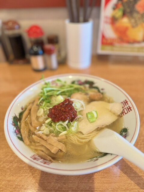 中華そばのトッピングは玉ねぎ(だし系は長ねぎ)、ほどよい辛味がスープに合う。