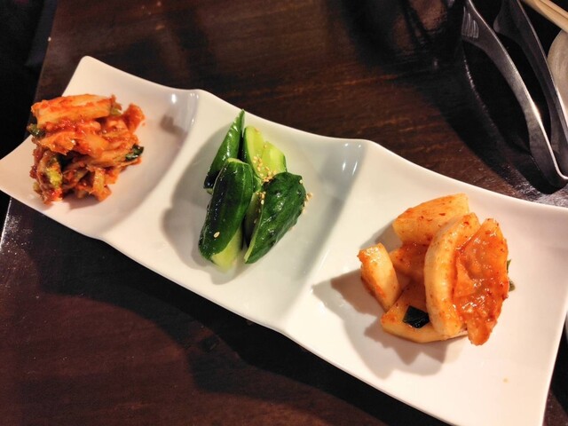 キムチ盛り合わせは旨みがあるけどあっさりめ、甘くなく手作りっぽい感じが好みです