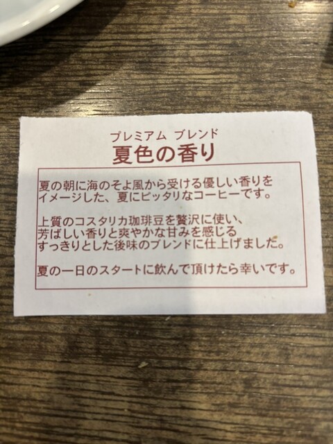 オーダーはお目当ての名古屋セット、コーヒーは迷いましたが、期間限定の夏色の香り