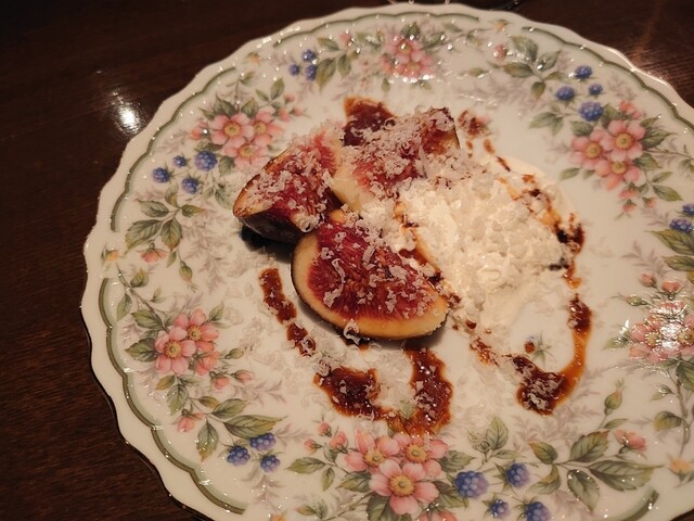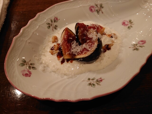 まずはシャンパーニュ、ラジイル、ピノムニエ。黒イチジクのカプレーゼ。バーデンピノブラン。長ネギのグリルをマリネに。バーデンピノノワール。ここで寒