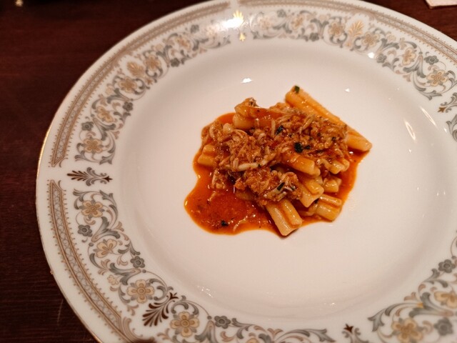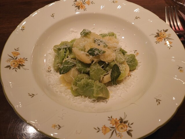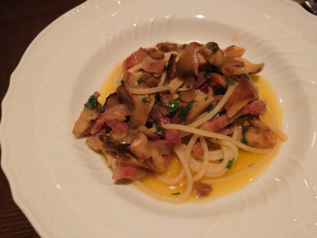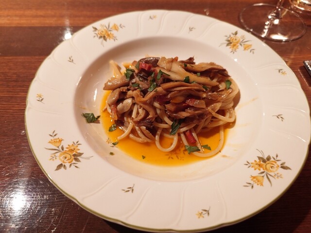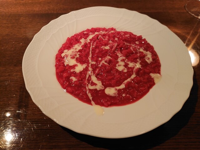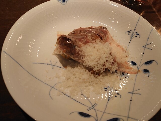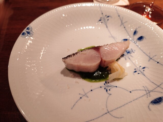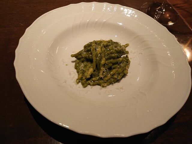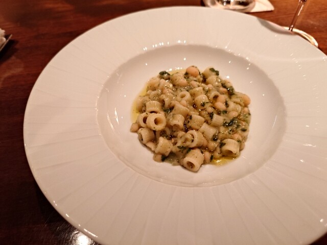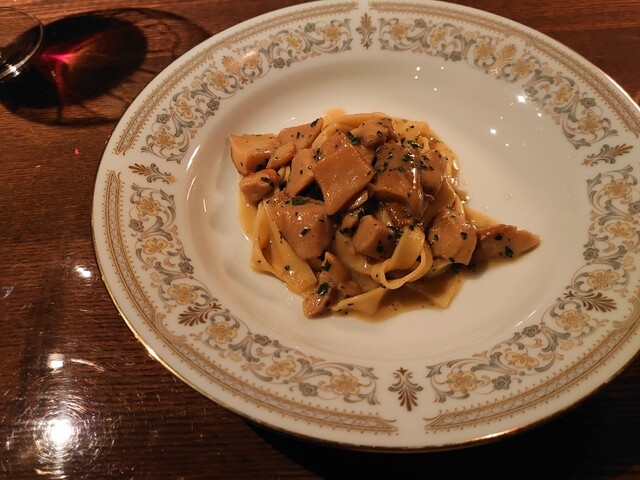 鰆。完璧な火入れ。皮パリ身はしっとり。こんな素晴らしい鰆は初めて。ランゲの赤ワイン。猪の煮込み。8時間煮込み。とても綺麗なお味。リオハの白ワイン。リゾットはサフラン。チーズはパルミジャーノレッジャーノ。キャンテイ。パスタは白インゲン豆と青唐辛子のショートパスタ。メインはニュージーランドの羊。ソミュールシャンピニー。デザートはテイラミス。素晴らしいお料理とワイン。ごちそうさまでした。