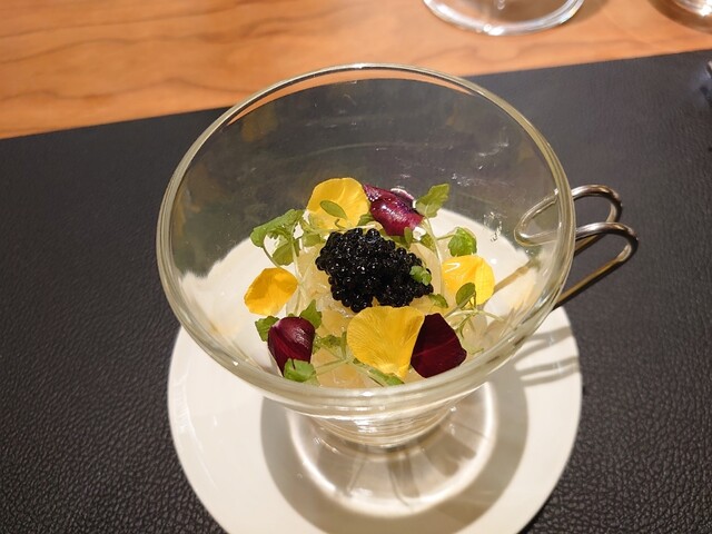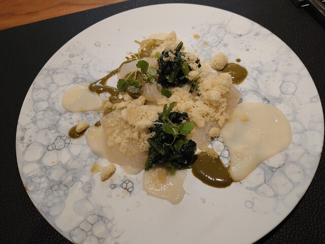 今まで食べたことのない組み合わせ。とても素晴らしいお料理でした。ワインのセレクトが例えば、もっとフランチャコルタを入れるとか、あると嬉しいです。またおうかがいいたします。ごちそうさまでした。