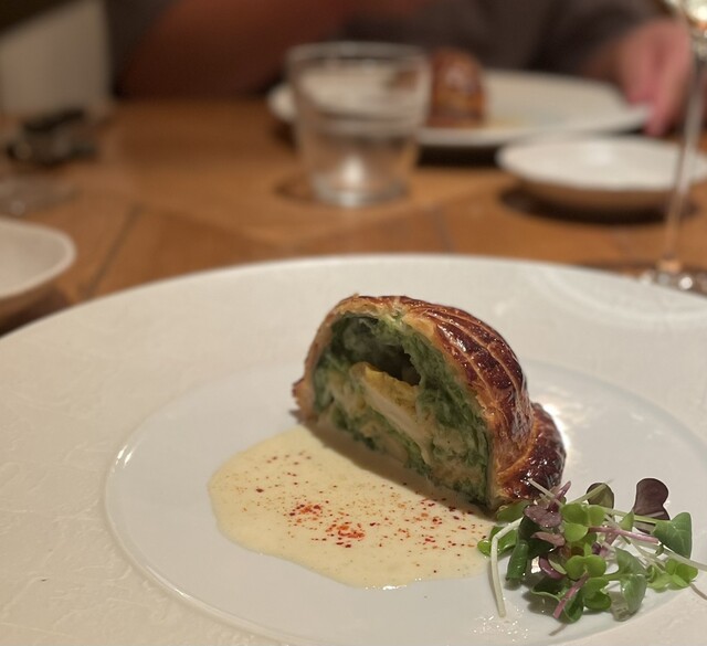 確かにつぶ貝と青のりの火入れは難しそうなので、これはパイの包み焼きも活かしていて良いなと思いました。美味しかったです。