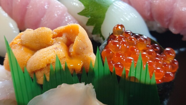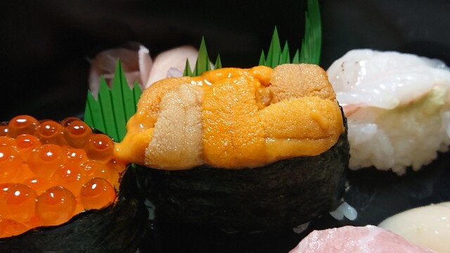 期待を胸に寿司をつまむ。まずは鉄火。なぜか通常のタイプと異なり、海苔が内側に巻き込んであるタイプです。うーん、おいしい。シャリとマグロ、海苔の三位一体。結構海苔の香りが豊かで、なぜかお米の粒感を強く感じる。イカ。ひたすらねっとり、クニュクニュしていやらしい食感。甘みもすごいですね。エビはぶりっぶりで弾力と歯ごたえが素晴らしい。イカを超える甘さと旨み。大トロ。脂が口の中でほろほろととろけ、シャリがほどける。夢見心地とはこういうことを言うのか。これは都内では食べられない。銀座で食べたら1貫2,000円くらいするんじゃないか。でも2つもある、やったぜ! こんなトロを食べられれば、人類は皆戦争なんてしなくなるんじゃないか。トロにノーベル平和賞をあげたい。いくらはプチプチ感がたまらず、味も濃い。普段食べてるいくらって何なんだろう。うにも素晴らしいねっとり感。甘みと苦みのバランスが素晴らしく、海苔と絡んで潮の風味をたたえた独特の旨味が舌の上に残る。いい余韻。ずっと浸っていたい。ホタテも弾力と甘みが素晴らしく、間違いなく絶品。最後にまた大トロ。もう何も言うことはありません。