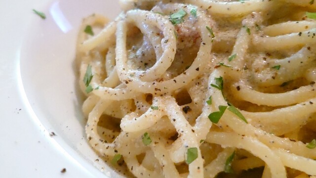 20分ほどで提供されたパスタは、一見素朴に見えてなかなかお目にかかれないヴィジュアル。たらこのように、むっとするような魚卵のにおいは控えめで、どこかクリームを思わせるような香り。