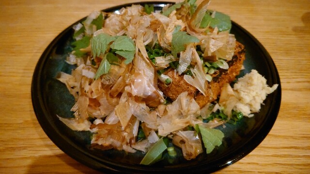 楯野川の純米大吟醸を頼み、もう少し料理を味わいたいので、伊達鶏の岩塩焼きハーフと厚揚げ焼きを追加。厚揚げは外カリカリで中トロトロ。いい厚揚げを使っている上、妥協ない火の入れ方。これはうまいねぇ。こういうシンプルなものがどれだけうまいかで、そのお店の姿勢や質がだいぶわかりますから、ここは間違いなく良店ですね。伊達鶏を切らしているということで、値引きしてくれた上でふつうの鶏の岩塩焼きを提供していただきましたが、こちらもバリッと焼き目が素晴らしく、大変満足な味。酒との相性は言うまでもない。最後は大七の純米きもとでフィニッシュ。