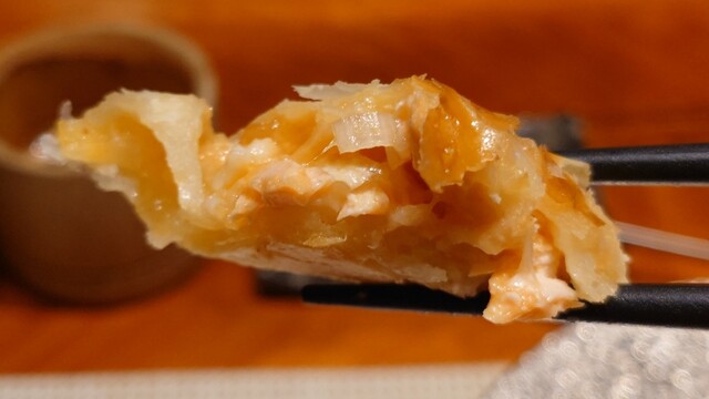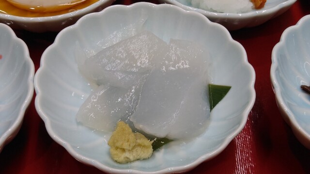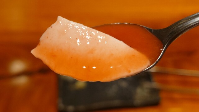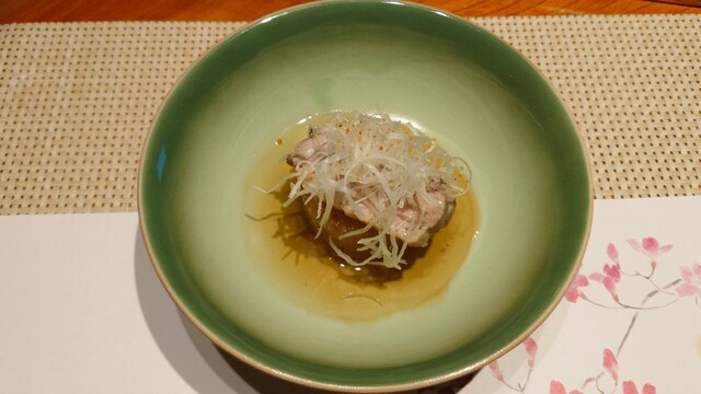 驚いたのが磐梯鱒のパイ包み。一見、洋食のそれかと思いきや、中に鰹だしの餡が封じ込められ、鱒とともにいただくという仕掛けもの。これは本当にうまいですねぇ。餡の旨味、鱒のきれいな脂、パイが渾然一体となっている。素材のすばらしさもある一方、シンプルで本当に腕が良くなければこのクオリティのものは食べられない。この日、一番のお皿でした。