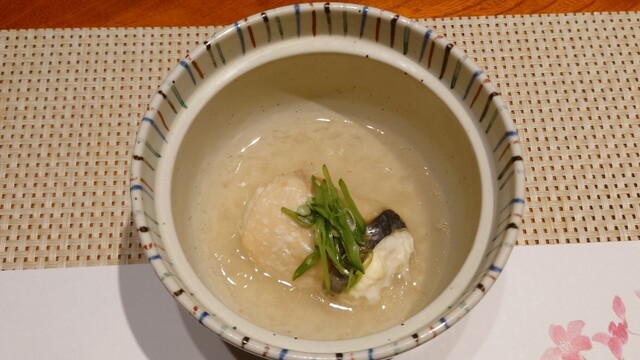 怒濤の後半は鴨大根。相変わらず出汁のクオリティが高く、とてもいいお味。鴨肉のきめの細かさ、味のしみた大根の味が印象に残ります。鰆と筍のチーズ蒸しは、また伏兵登場ですね。これが存外にうまい。チーズ臭いキワモノかと思いきや、鰆と筍にふんわりとチーズの風味が残り、あとは餡状の出汁の優しい味ととろみ。技ありの椀もので、一見地味ながら、料亭などで出てくる凝ったお料理と同じクラスの味と思います。途中で川魚塩焼を別料金を払って追加。これも見事なお味。イワナですね。上品でさらりとした脂。しっとりとした身。こんなに川魚がうまいとは思わなんだ。清流で水がうまいからこそ、魚も美しい味に仕上がるのかもしれません。〆は地元のコメと吸い物、漬物。文句なくうまい。3杯もお代わりしてしまう。