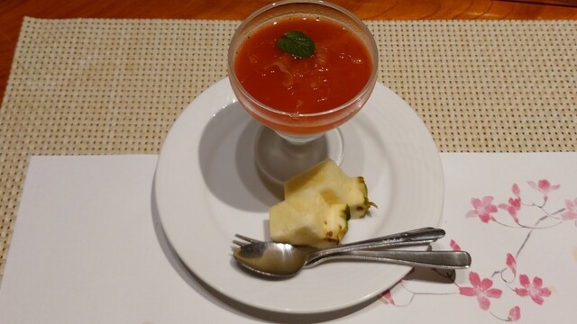 デザートの苺ミルクプリンで口の中をさっぱりしてフィニッシュ。