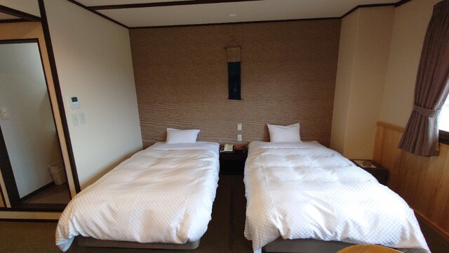 泊まったお部屋は、小上がりの座敷とベッドがある贅沢なツイン。利用日2日前の直前の予約でしたが、日曜日なのも功を奏したようです。温泉は熱め。塩分をたっぷり含んだ温泉なので、上がったあとも体が冷えない。冬にはいい湯でしょうね。