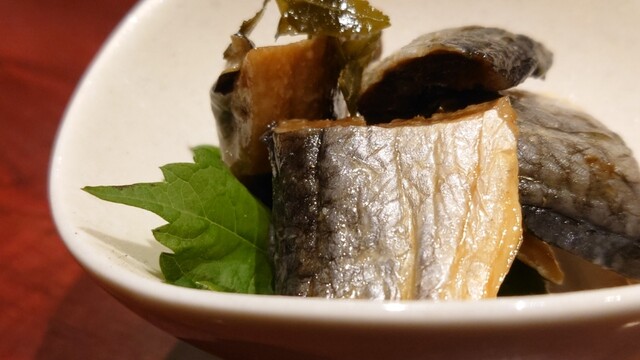 カツオ刺ににしんの山椒漬け、納豆としそのかき揚げを追加で頼みます。カツオは立派な刺身で、ニンニクとよく合う。内陸の会津でもこのクオリティがいただけるのは純粋にうれしい。にしんの山椒漬けは安定の味。ぐいぐいと酒が進んでしまい、国権の夢の香を追加します。納豆のかき揚げも素晴らしいのひと言。塩とだしで下味を付けた納豆種。ふわふわの食感。そこにしそとネギの香りが混じって、なんとも言えないうまさ。組み合わせの妙、仕込みの精妙さ、揚げの技術。一見地味ながら、死角のない仕上がり。この日一番のお皿ですね。圧倒的に酒とも合う。