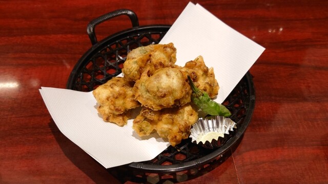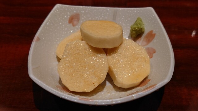長いもの醤油漬け、鶏天、納豆オムレツを頼みます。料理、つまみの値段も400円前後からで大変良心的ですね。長芋の醤油漬けでやられる。少し柔らかく、ふわっさくっとした不思議な食感。醤油との相性が抜群で、これは俄然酒が飲みたくなっていまう。鶏天も中がふわっふわの逸品。添えられた藻塩が泣かせる。下ごしらえ、揚げ方、火加減などすべてのクオリティが高い。