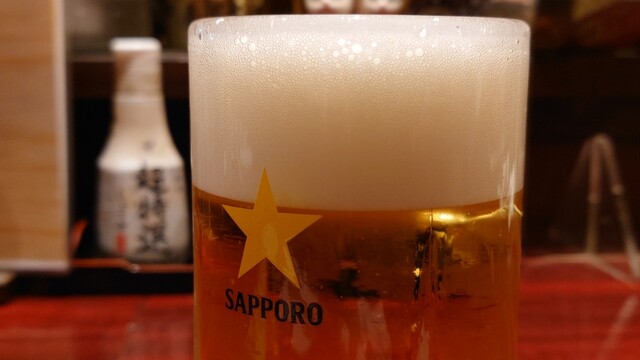 電話で席が空いていることを確認後、カウンターに席を取ってもらう。瓶ビールでしっぽりもいいかな、とも思ったのですが、のどの渇きに耐えられずとりあえず生でのどを濡らす。カウンターの上にはびっしりとメニューが書かれた短冊。これはかなりいい店なのではないかと期待が高まる。お通しはちくわと糸こんの煮物。だしがしっかり、味もしょっぱくて突き出しとしては理想の味。ここは当たりだ、と全俺のセンサーがささやき始めます。