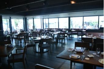 ディナー用にテーブルセッティングが完了した店内