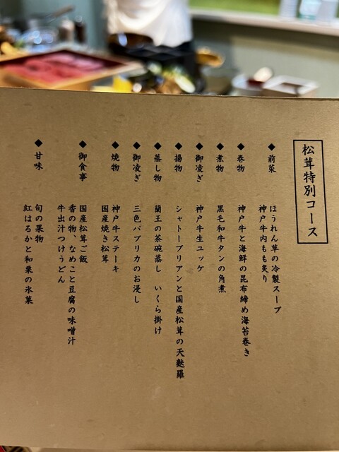 こちらは、神戸牛と旬野菜と国産の松茸を