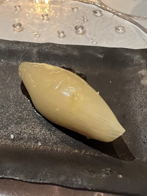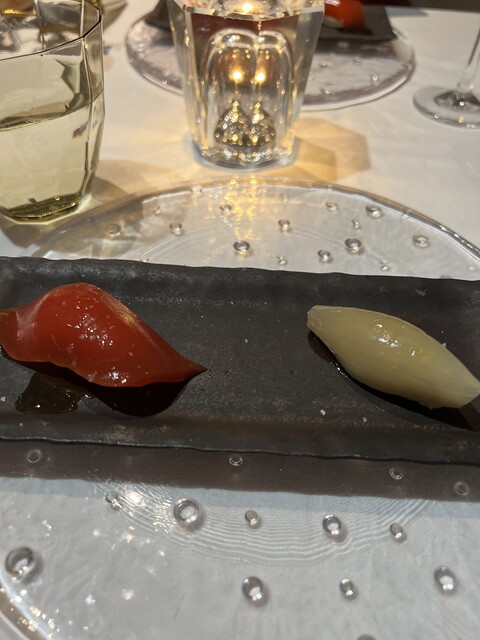 イカは、淡路島の玉ねぎ岩塩焼き、シャリが仔牛のパテ