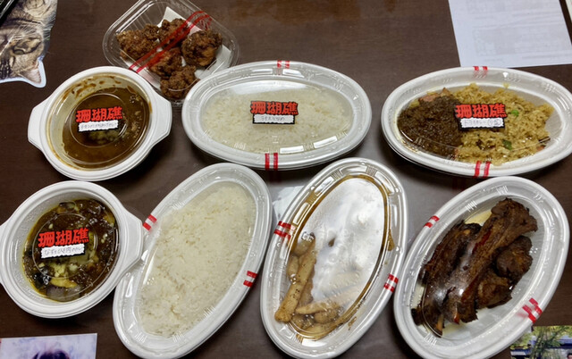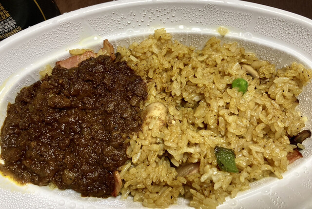 ドライカレーはカレースパイスが効いたドライカレーに珊瑚礁自慢のカレーがかかったダブルカレー。