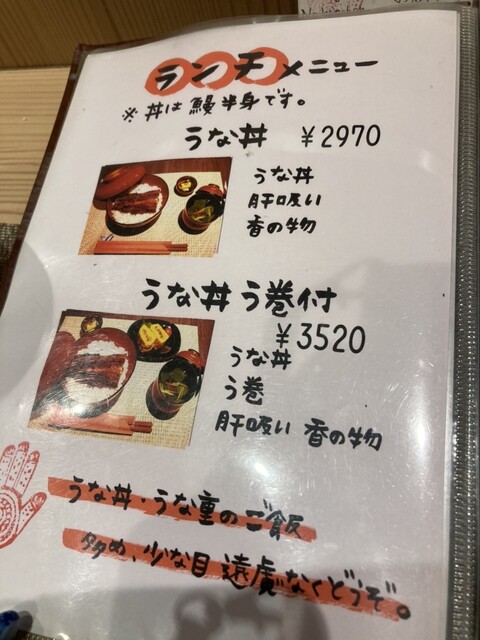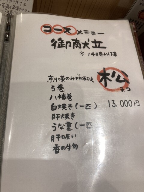 松竹梅のコースとうな重、うな丼、一品ものとあります。