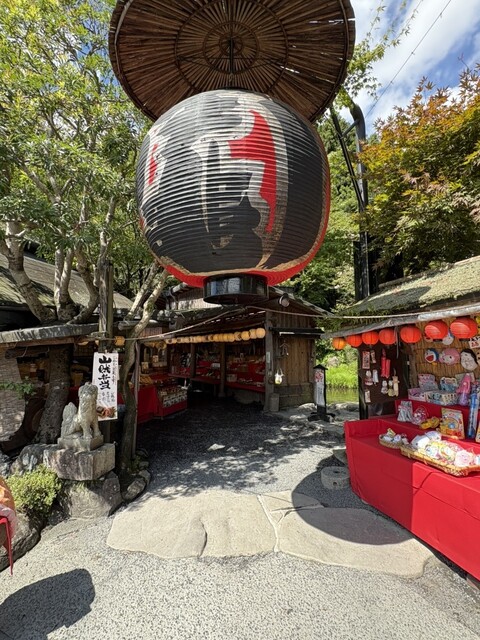 注文後待ち時間に敷地内を散策すると、複数の屋台のような売店、錦鯉の餌やりコーナー、神社のようなもの、等々、飲食店の規模を超えている。
