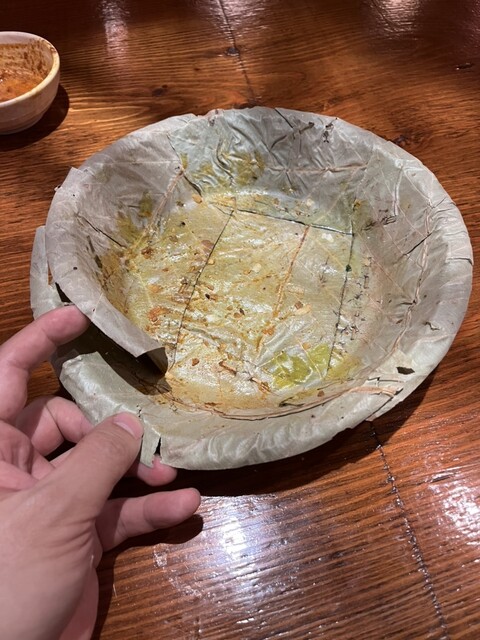 ちなみに器が葉っぱでできており芸が細かくてイイ。