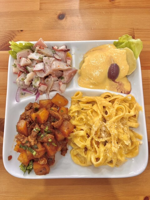 なるほど、前菜、メイン、パスタとワンプレート式ね…これならボリュームもあって満足だわ。