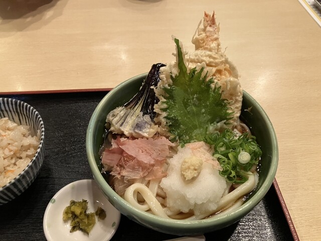 とり天と鯛ちくわ天と温玉ぶっかけ+かやくごはん