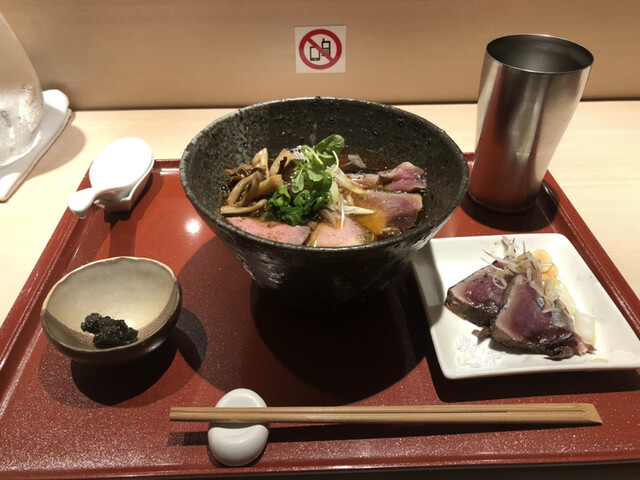 しばらくして着丼。チャーシューの代わりに藁焼きされた鰹がずらっと並び目を惹きます。