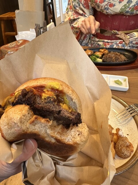 チーズバーガーをランチにお友達と食べました。こんがりと焼き目のついたお肉は香ばしくとても肉の旨味を感じました。長時間煮込んでいると言う飴色玉ねぎも味わい、深く濃厚なチェダーチーズと一緒にほおばりました。