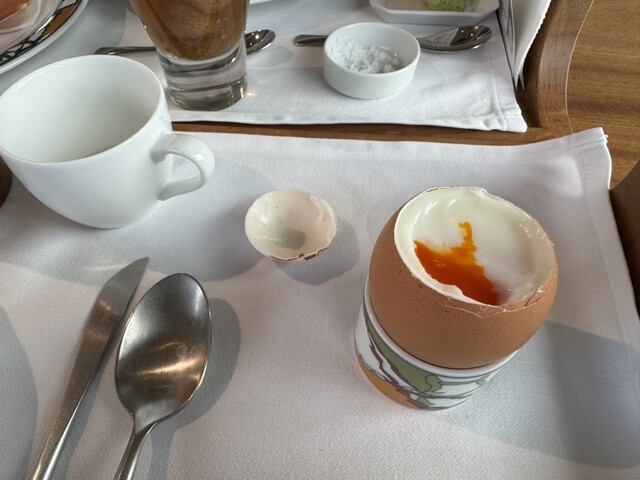 まー、美味い。そりゃ美味いでしょう。ポーチドエッグは写真のとおり、素敵な黄身の色してます。瀬戸塩を振っていただけばねっとり美味い。