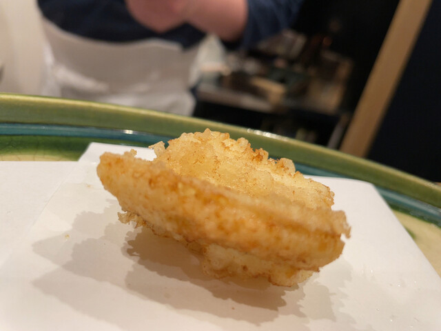 今回は浜松駅から歩いて10分ほど所にある日本料理『勢麟』さんへお邪魔しました。こちらは言わずもがなですが静岡県そして浜松を全国レベルに引き上げたお店の1つです。今回は4月5月は『天ぷら屋』です。 --本日いただいたお食事-------------- ~ 御料理 ~ ・おこぜのお椀 ・マゴチの刺身 ・本ミルガイの胡麻和え ・アメーラトマト ・大和はまぐりの雑炊 ~天ぷら~ ・キス ・メイタガレイ ・アオリイカ ・特大アスパラ根元 × 1 ・特大アスパラ頭 × 1 ・特大海老 × 2本 ・新玉ねぎ (かき揚げ風) ・特大アナゴ 1人1本