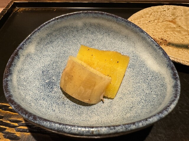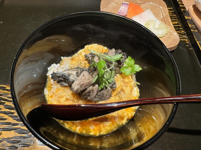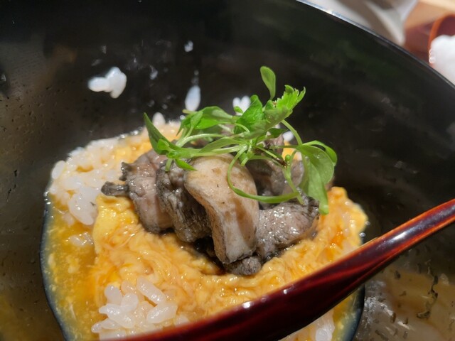 焼き鳥百名店 2023 ~ ~~~~~~~~~~~~ --本日いただいたお食事------------ ~ツマミ~ ・天城軍鶏のお出汁 ・天城軍鶏のタタキ ① ▶︎ ムネ140日 ▶︎ ササミ170日 ・辛くないよだれ鶏 ・天城軍鶏のタタキ ② ▶︎ モモ肉 (メスオスの順) ・烏骨鶏卵の茶碗蒸し ・天城軍鶏の肉味噌 ・イエローキャロット(焦がしバター) ・レベーパテ ・菜の花と自然薯(辛子醤油) ~串物~ ・モモ (一口目メス 二口目オス) ・だきみ (皮付き胸肉) ・ネギ ・レバー ・無農薬エシャロットつくね ・手羽先 ・ぼんじり ・うずら ~ご飯物~ ・炭火焼き親子丼 ・炊き込みご飯 ・炊き込みご飯のそぼろ弁当 ~追加串~ ・ハラミ ・ぼんじり ・セセリ