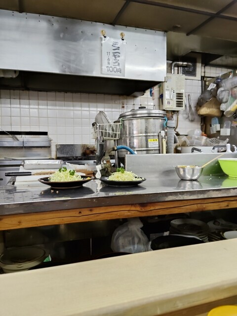 カウンター席に座り愛想の良い女性店員さんに注文。高倉健さんを思い出させる厨房の無口な男性が調理を始める。ビールを飲みながら店内を眺める。確かにこのお店は昭和の生き残り。