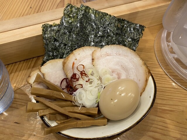 どの麺種を頂く際も特製トッピングは必ずつける。店の向かいの丸芳牛肉店から仕入れるチャーシュー、元住吉の高喜商店から仕入れる大判の海苔、青森の中月産業から仕入れる味玉、何れも欠かすわけにはいかない美味しさだ。