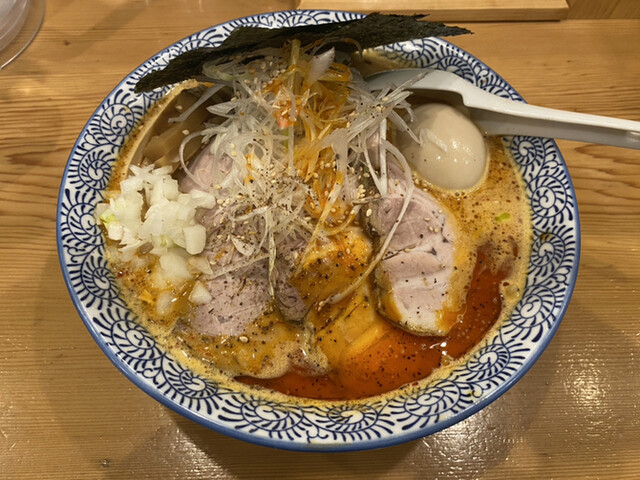 「ごまの辛いそば」ですらも「優しさ」が伴う辛さが特徴で、自分の中で某店の「北極」みたいな激辛麺を食べに行くのと笑歩のごま辛を食べるのは目的自体が違うのだと考えてる。「笑歩」という店名と店主夫婦の笑顔(奥様は育休中だが)とスープの優しい美味しさの三拍子が揃っている感じ。
